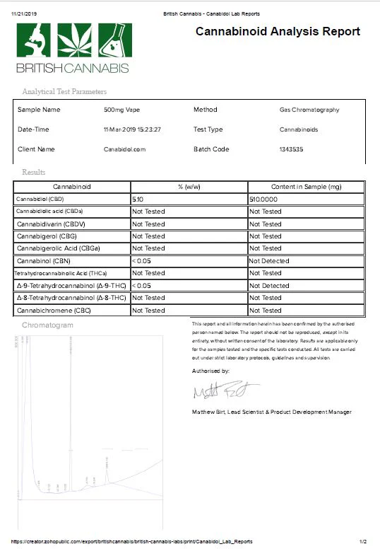 CBD by British Cannabis 500mg CBD Vape E-liquid 10ml