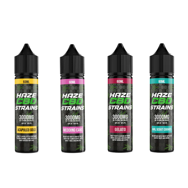 Enhance your CBD vaping experience with the exquisite flavors of HAZE CBD Vape Juice. Inspired by renowned cannabis strains, each 50ml bottle contains a THC-free, CBD-infused e-liquid, perfect for those seeking relaxation and indulgence. Crafted with precision, the flavor profiles are tailored to cater to your CBD needs. The carefully balanced blend consists of 50% PG (propylene glycol) and 50% VG (vegetable glycerine), ensuring a smooth and satisfying vape. Immerse yourself in a rich variety of tastes, meticulously handcrafted for your enjoyment and relaxation.